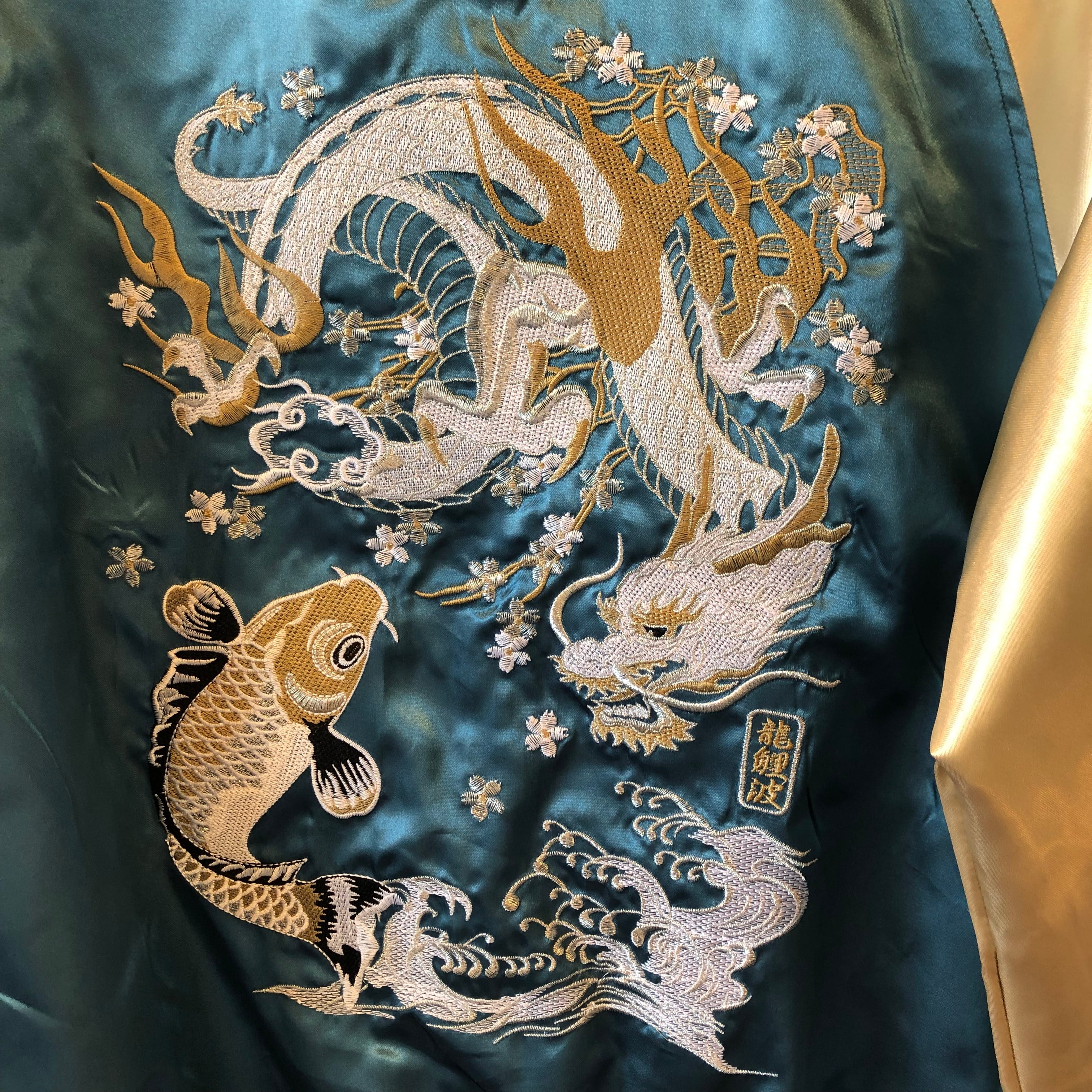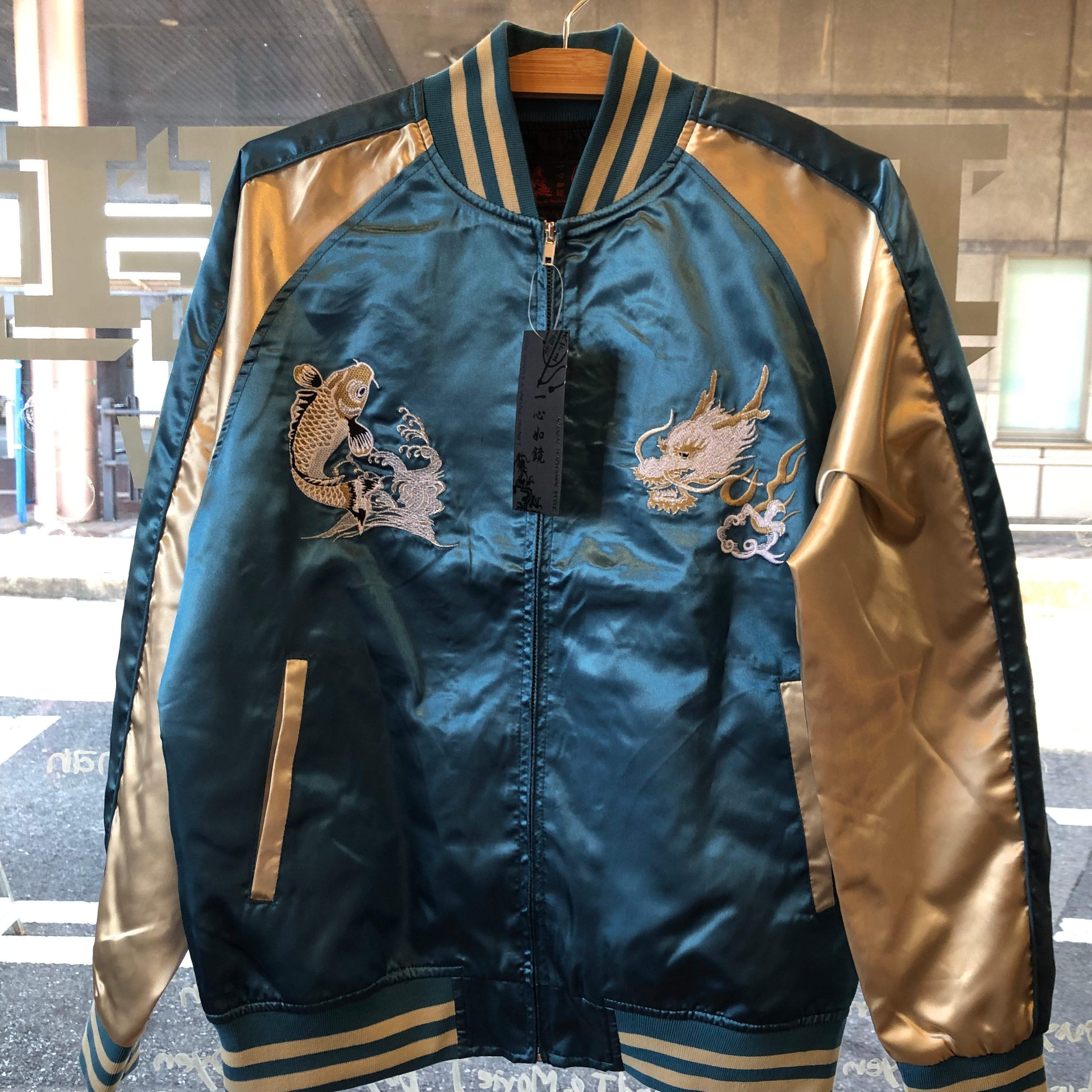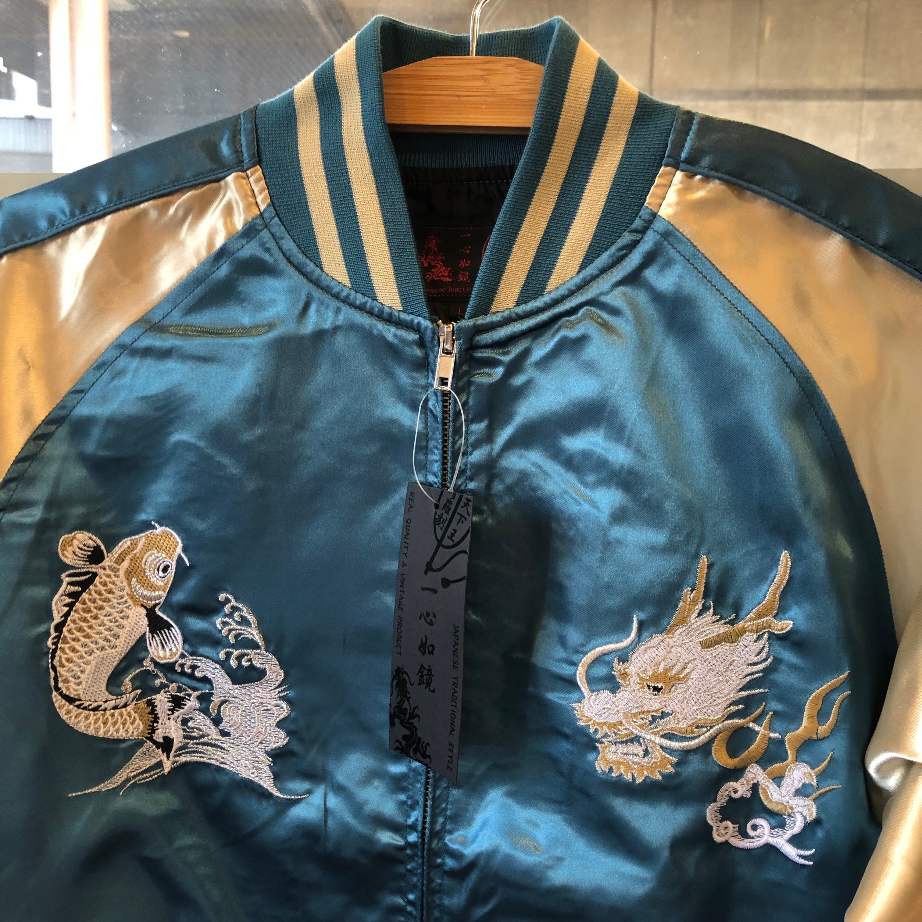 タグ付き新品 未使用 和柄 龍鯉波 スカジャン スーベニアジャケット ブルー