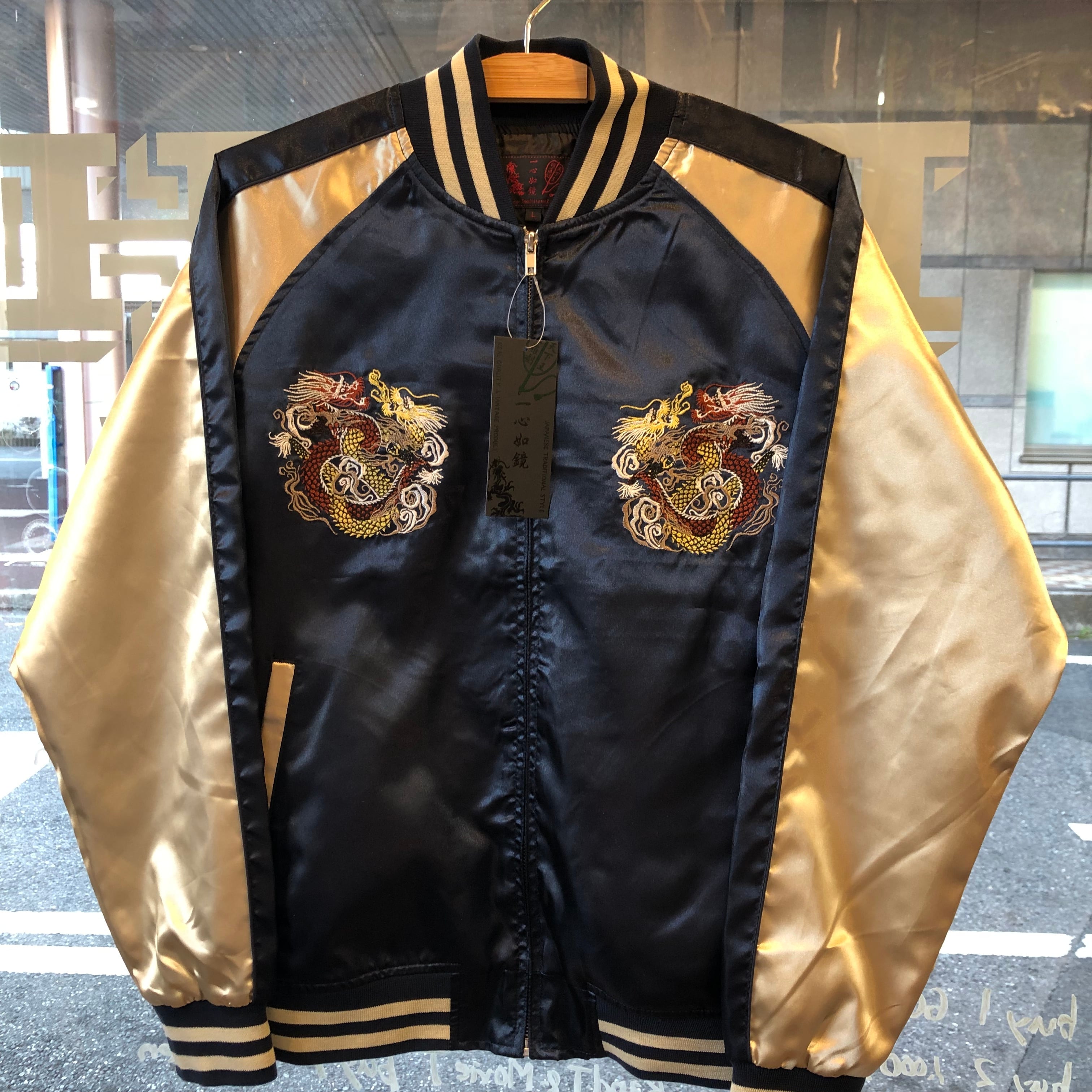 タグ付き新品 未使用 和柄 双龍 スカジャン スーベニアジャケット ネイビー