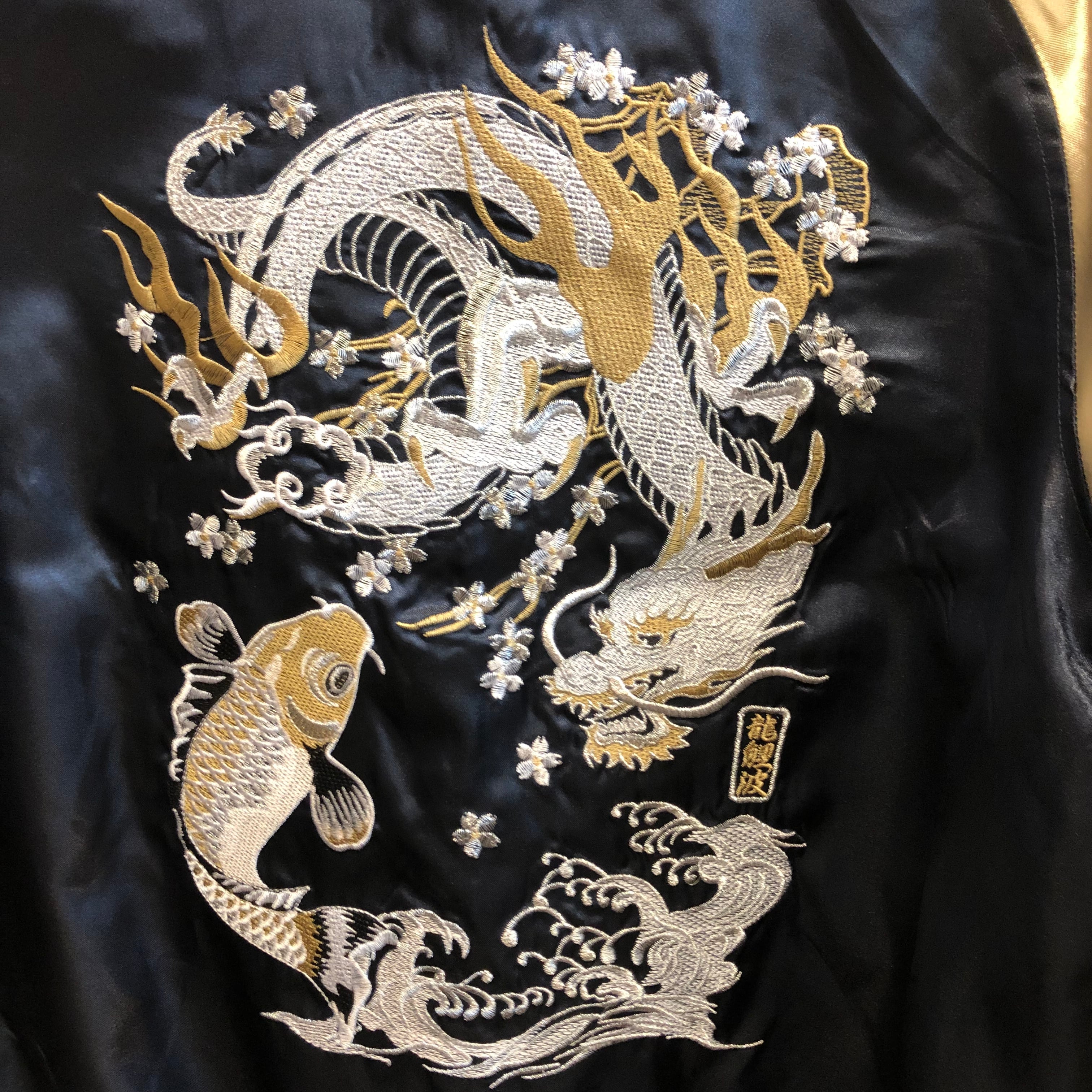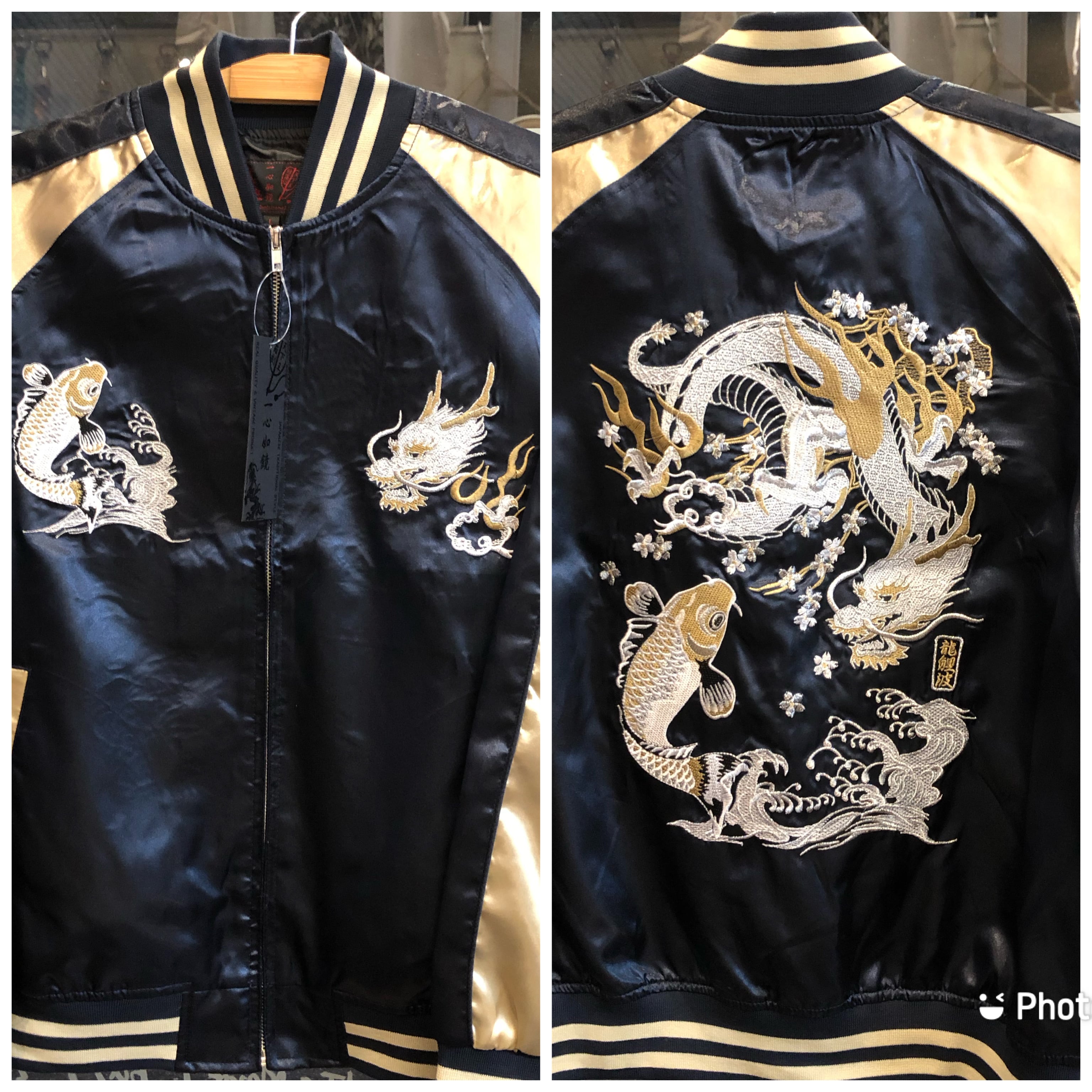 タグ付き新品 未使用 和柄 龍鯉波 スカジャン スーベニアジャケット ネイビー