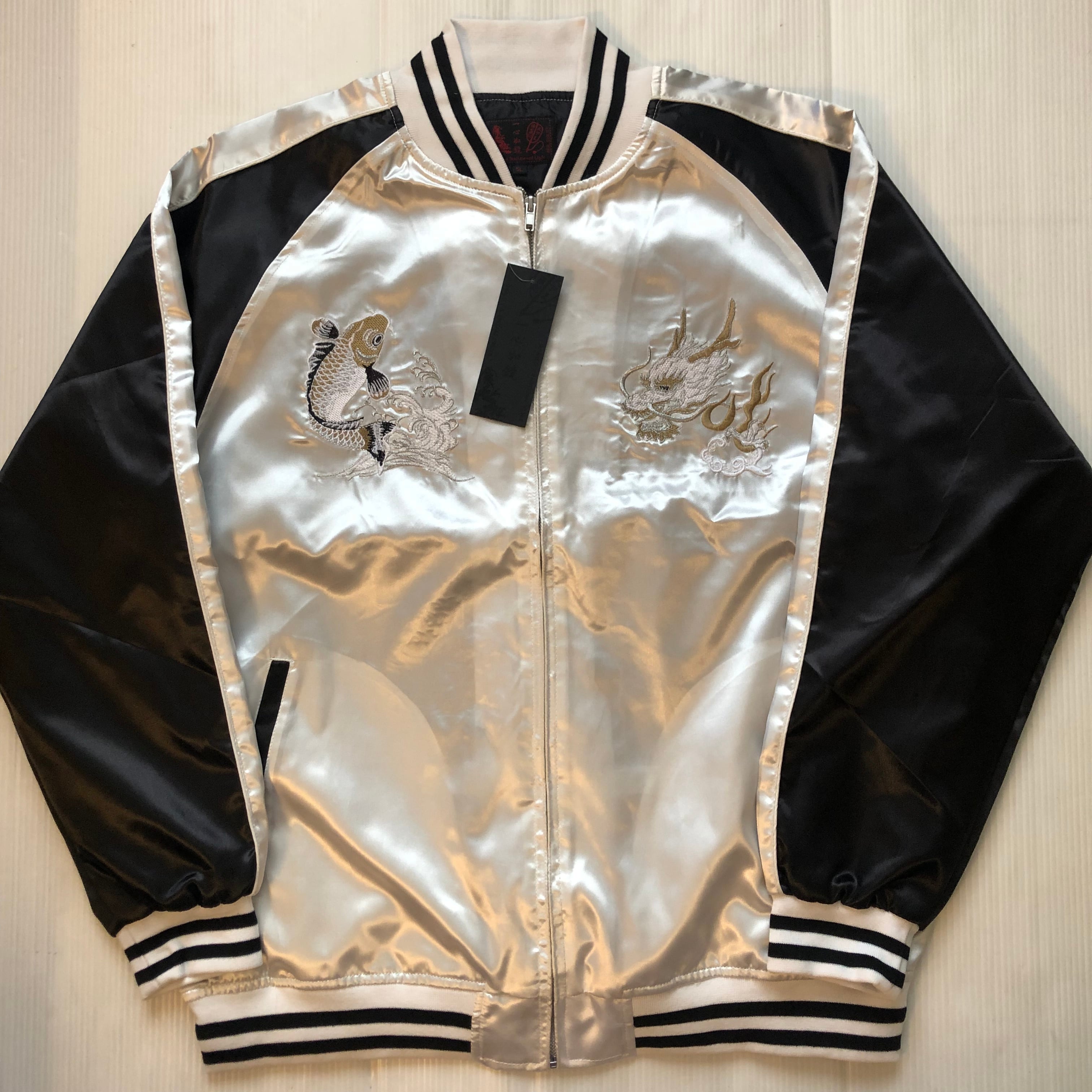 タグ付き新品 未使用 5L 和柄 龍鯉波 スカジャン スーベニアジャケット シルバー