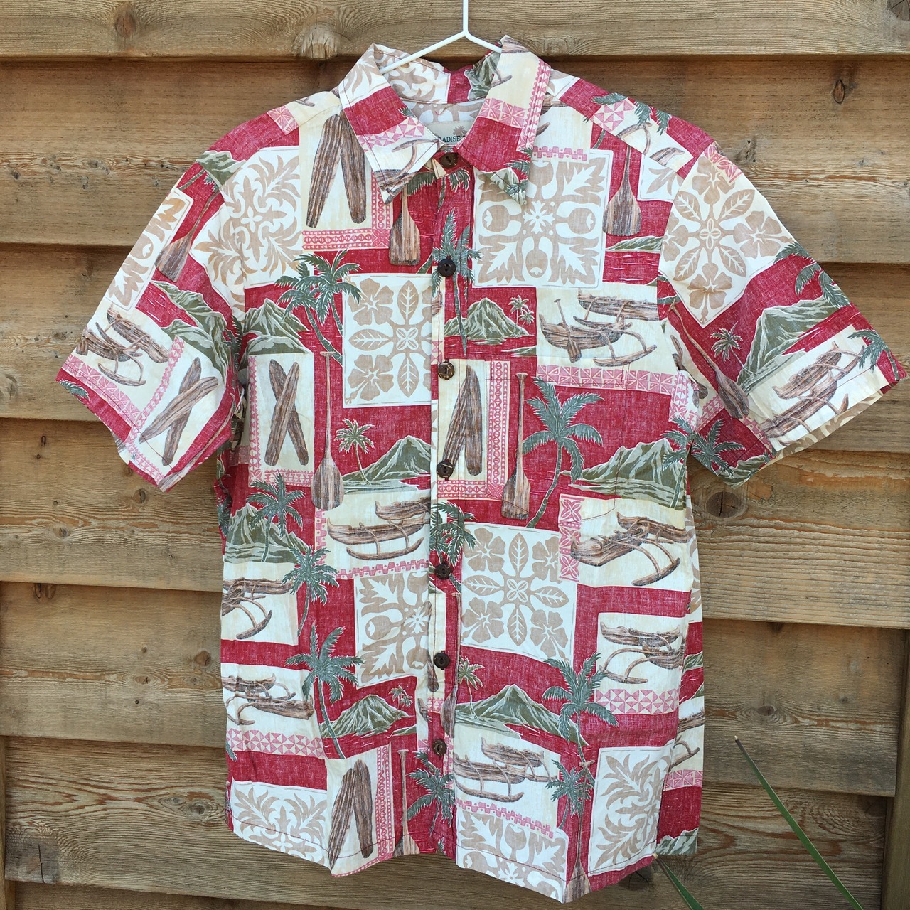 パラダイスベイ PARADISE BAY 裏使い やしの木柄 風景柄 ハワイアンシャツ アロハシャツ ハワイアン アメカジ