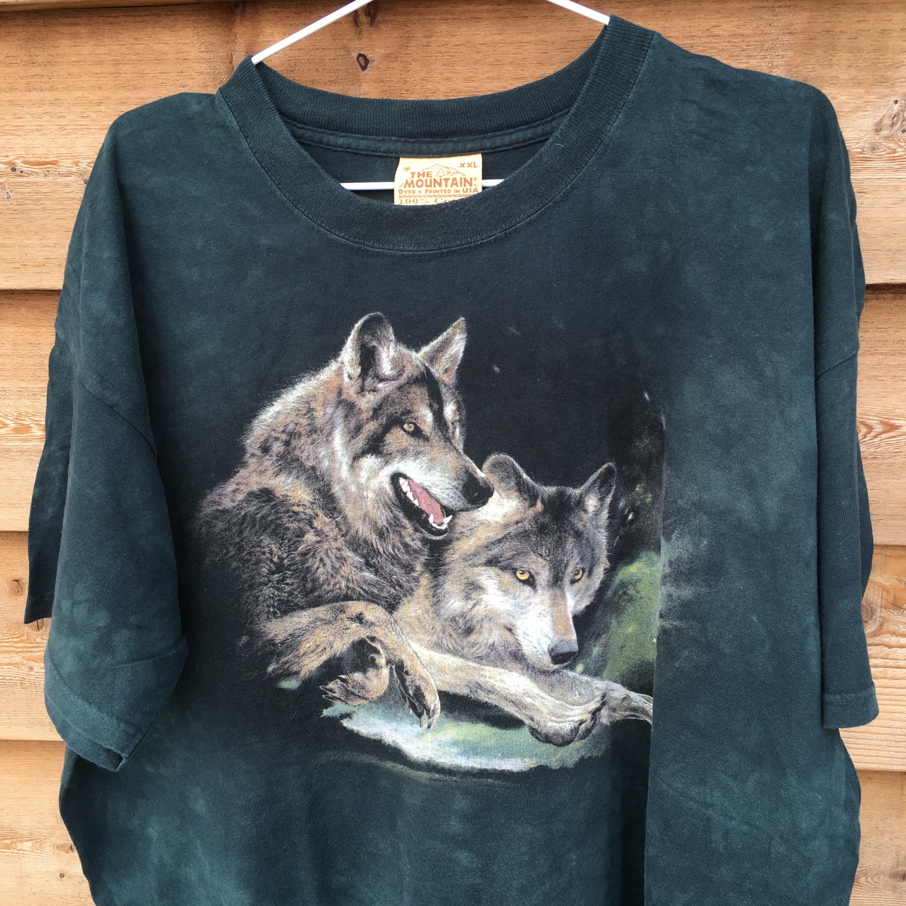 USA古着 THE MOUNTAIN ウルフ柄 ムラ染 プリントTシャツ