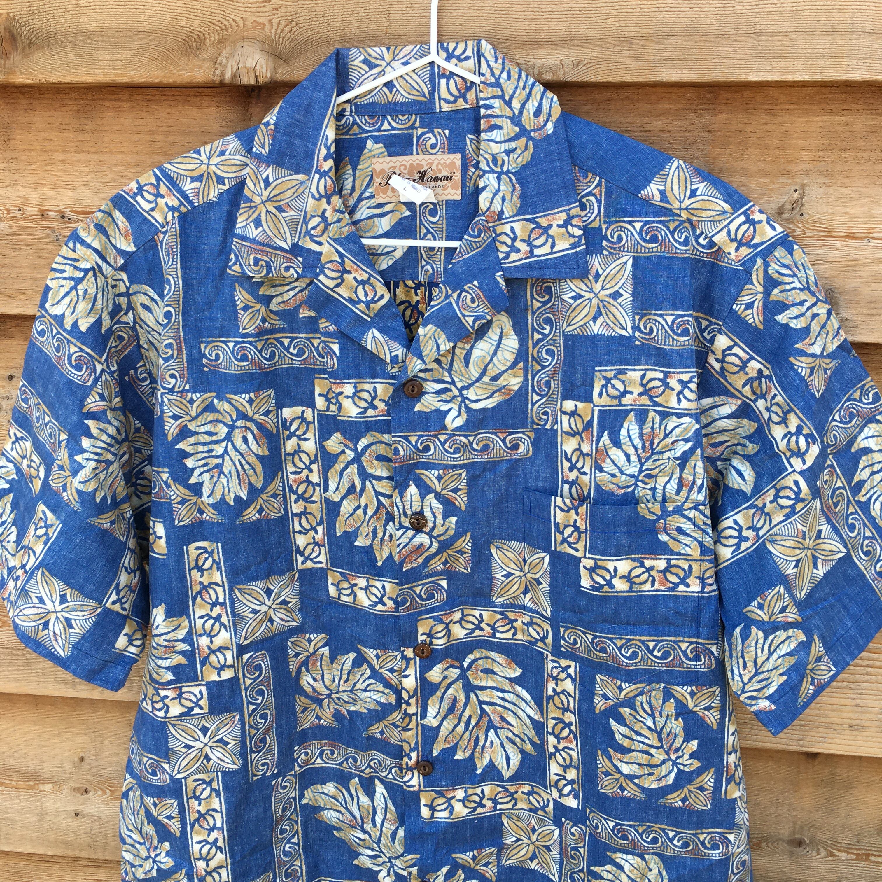 ブルーハワイ Blue Hawaii MADE IN HAWAII 裏使い リーフ柄 ホヌ柄 ハワイアンシャツ アロハシャツ ハワイアン アメカジ