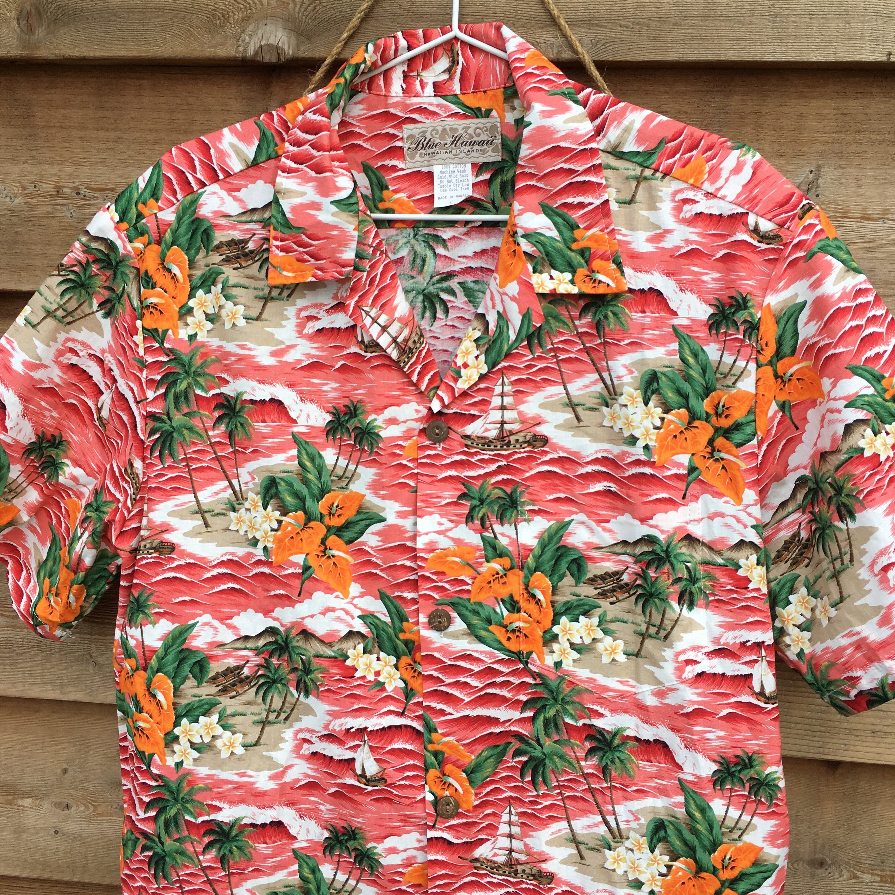 ブルーハワイ Blue Hawaii MADE IN HAWAII やしの木柄 花柄 風景柄 ハワイアンシャツ アロハシャツ ハワイアン アメカジ