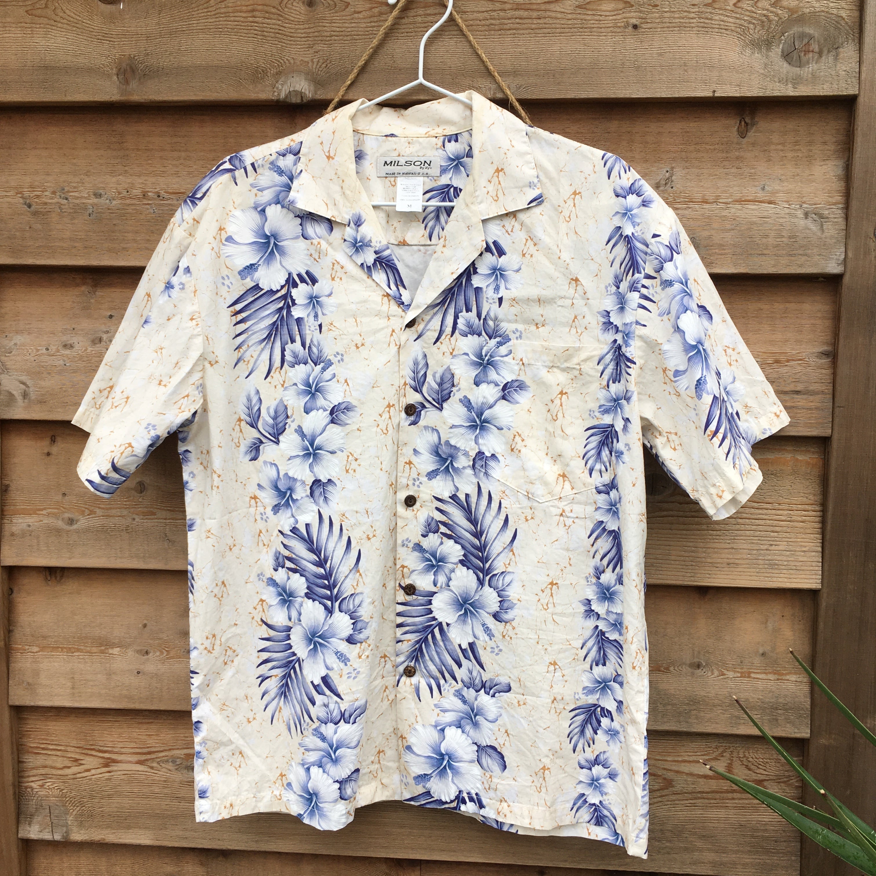ミルソン MILSON By Ky's MADE IN HAWAII ボーダー柄 花柄 リーフ柄 ハワイアンシャツ アロハシャツ ハワイアン アメカジ
