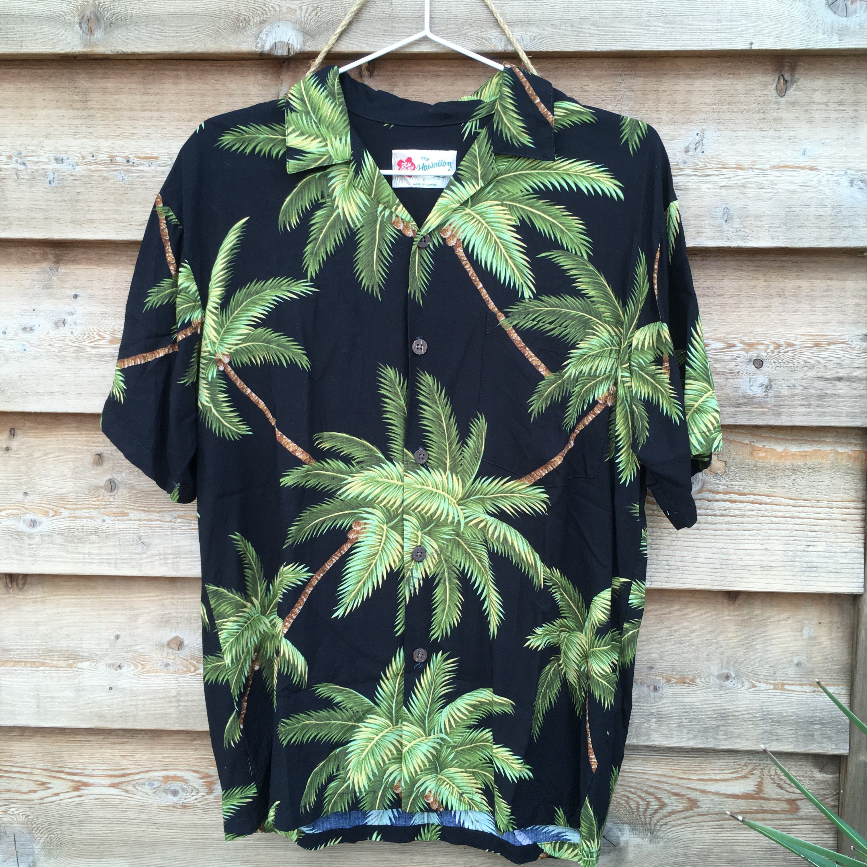 ヒロハッティ MADE IN HAWAII やしの木柄 ハワイアンシャツ アロハシャツ ハワイアン アメカジ