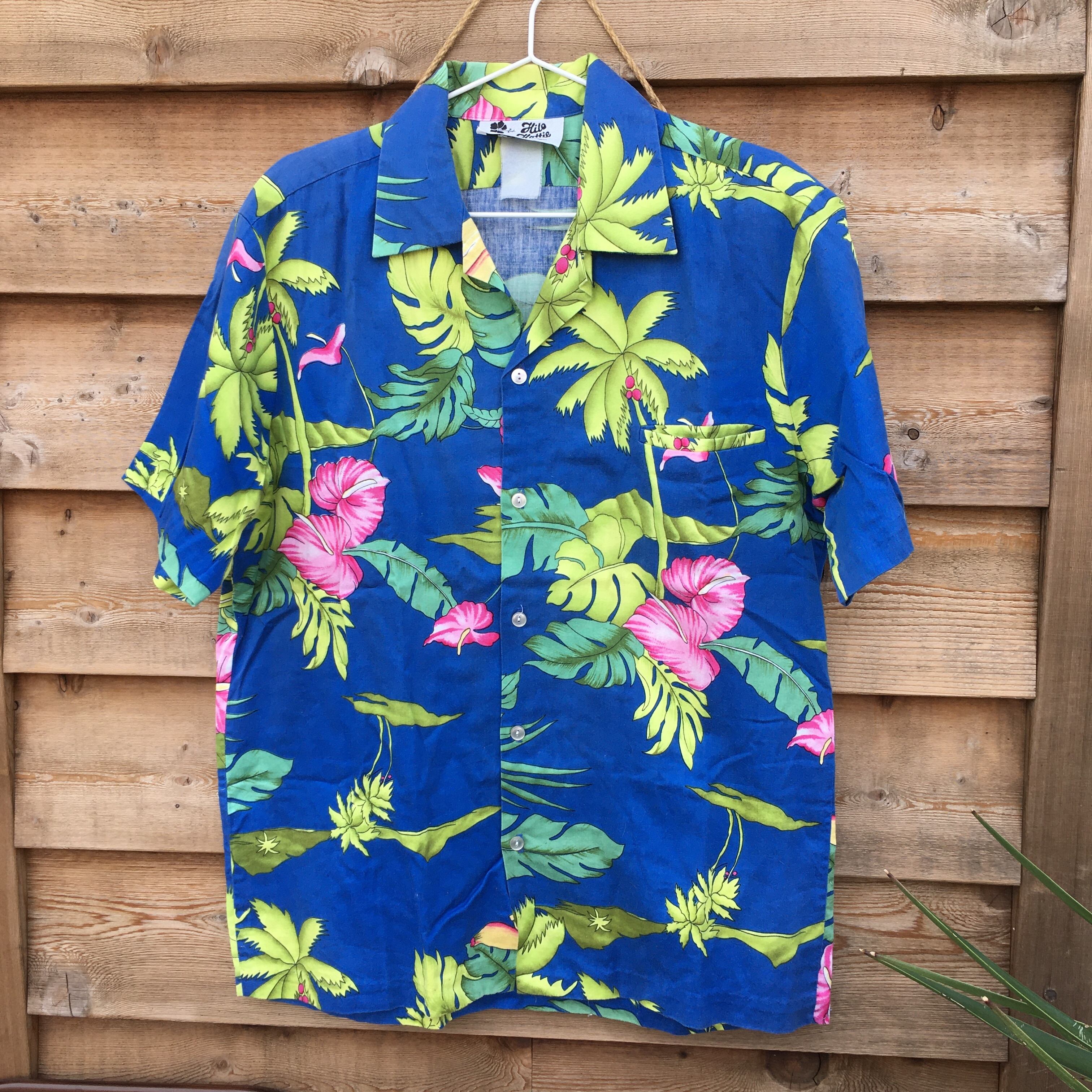 ヒロハッティ MADE IN HAWAII やしの木柄 リーフ柄 花柄 ハワイアンシャツ アロハシャツ ハワイアン アメカジ