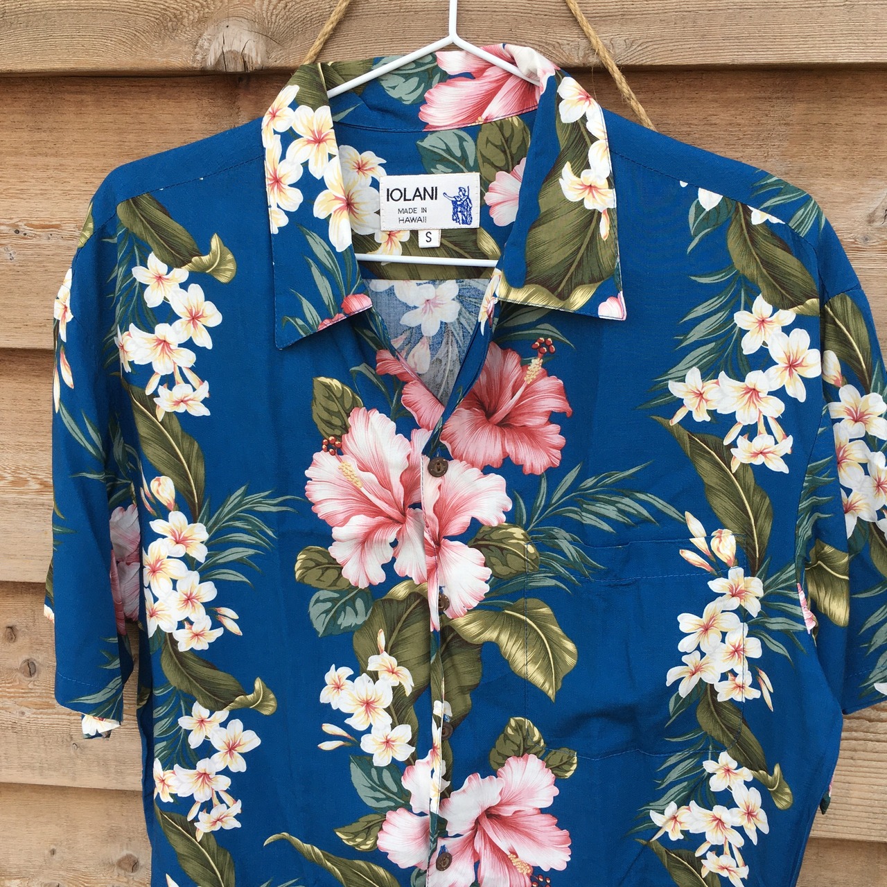 イオラニ IOLANI MADE IN HAWAII ボーダー柄 花柄 リーフ柄 ハワイアンシャツ アロハシャツ ハワイアン アメカジ