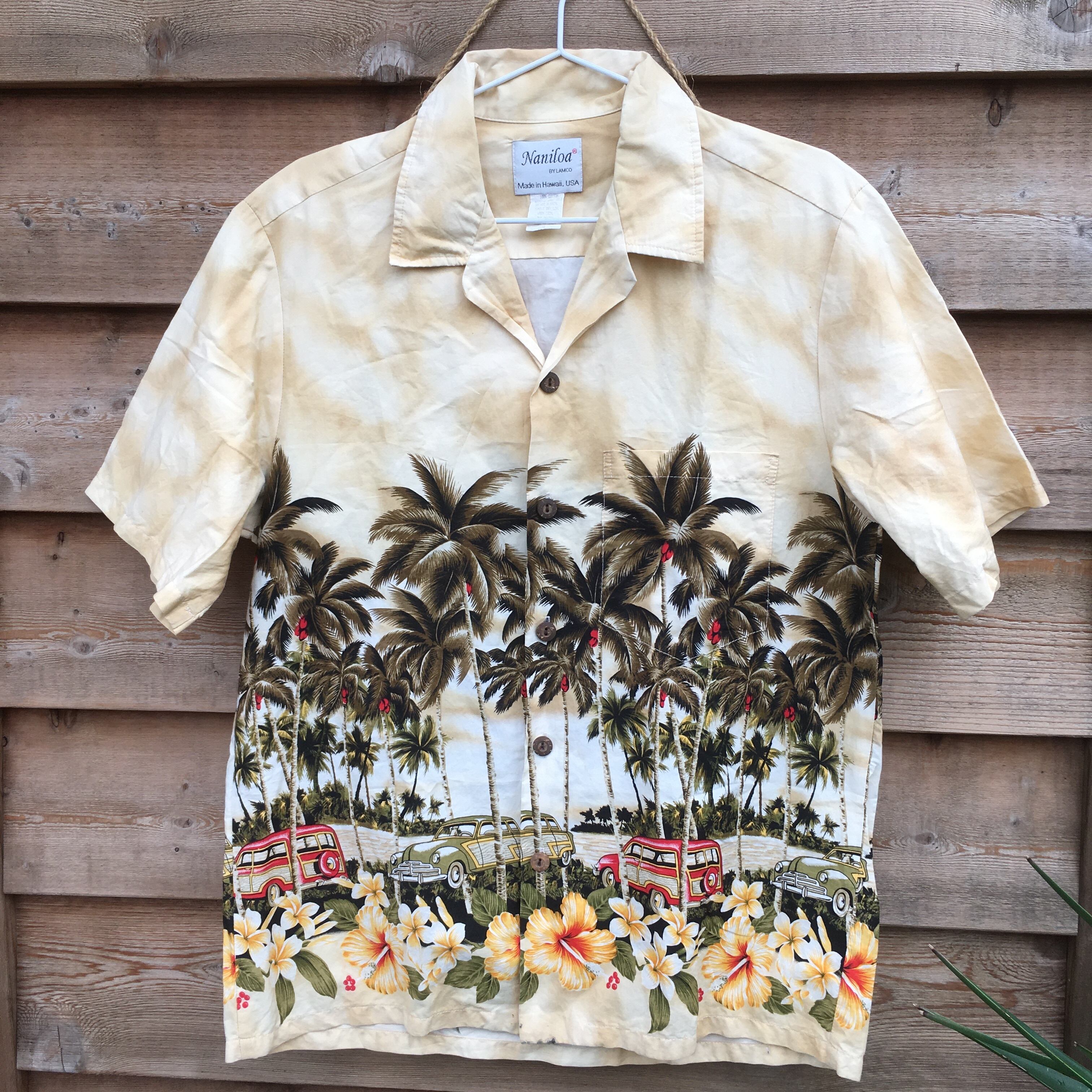 Naniloa MADE IN HAWAII U.S.A. やしの木柄 クラシックカー柄 ハワイアンシャツ アロハシャツ ハワイアン アメカジ