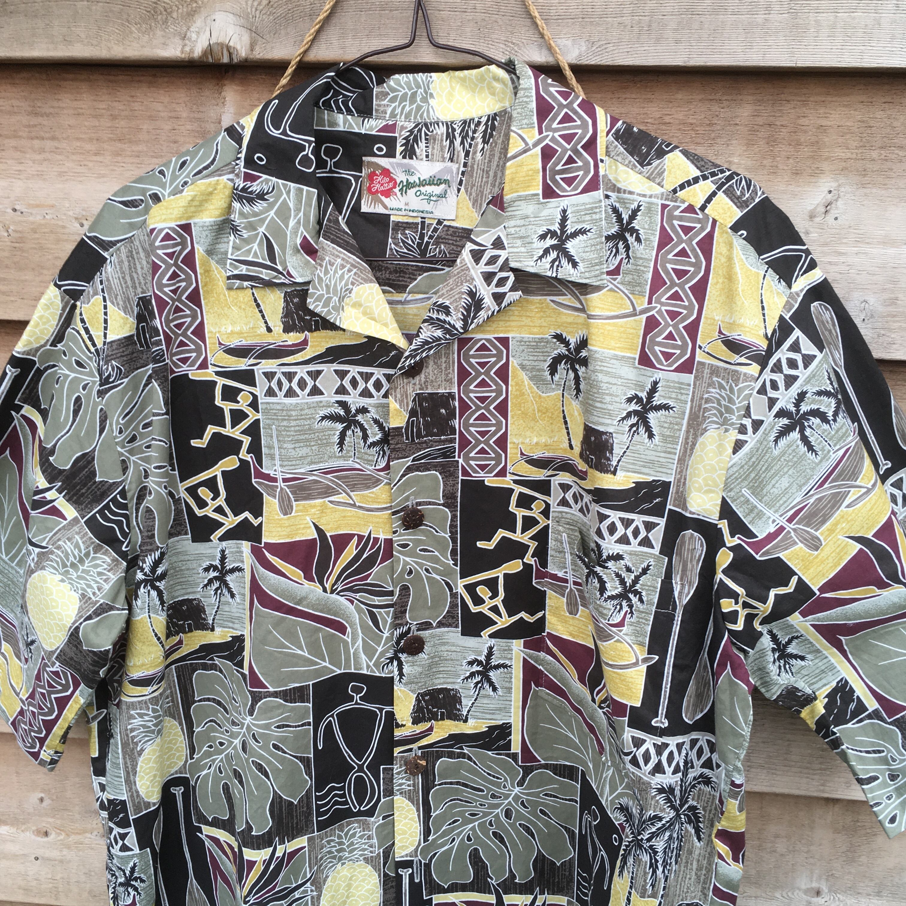 ヒロハッティ Hilo Hattie M 風景柄 ハワイアンシャアロハシャツ