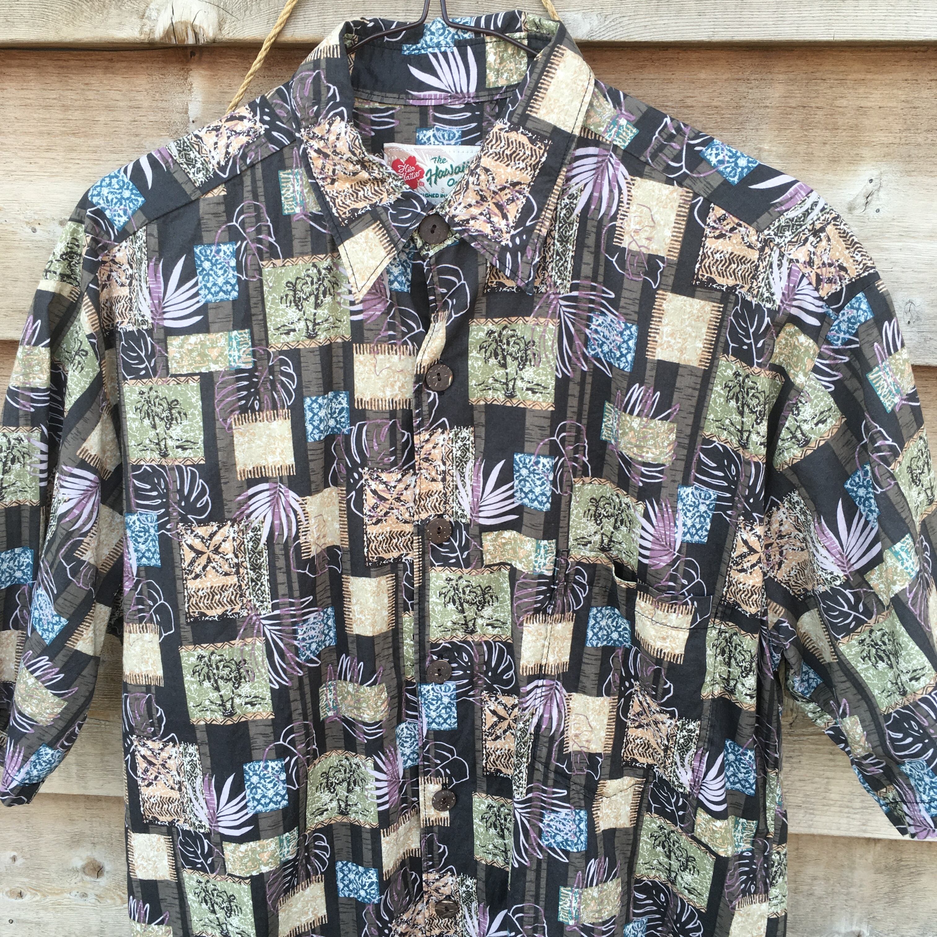 ヒロハッティ Hilo Hattie S リーフ柄 やしの木柄 ハワイアンシャツ アロハシャツ