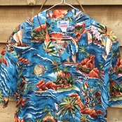 ビッグサイズ HAWAII MADE I HAWAII U.S.A. XL 風景柄 ハワイアンシャツ アロハシャツ ブルー