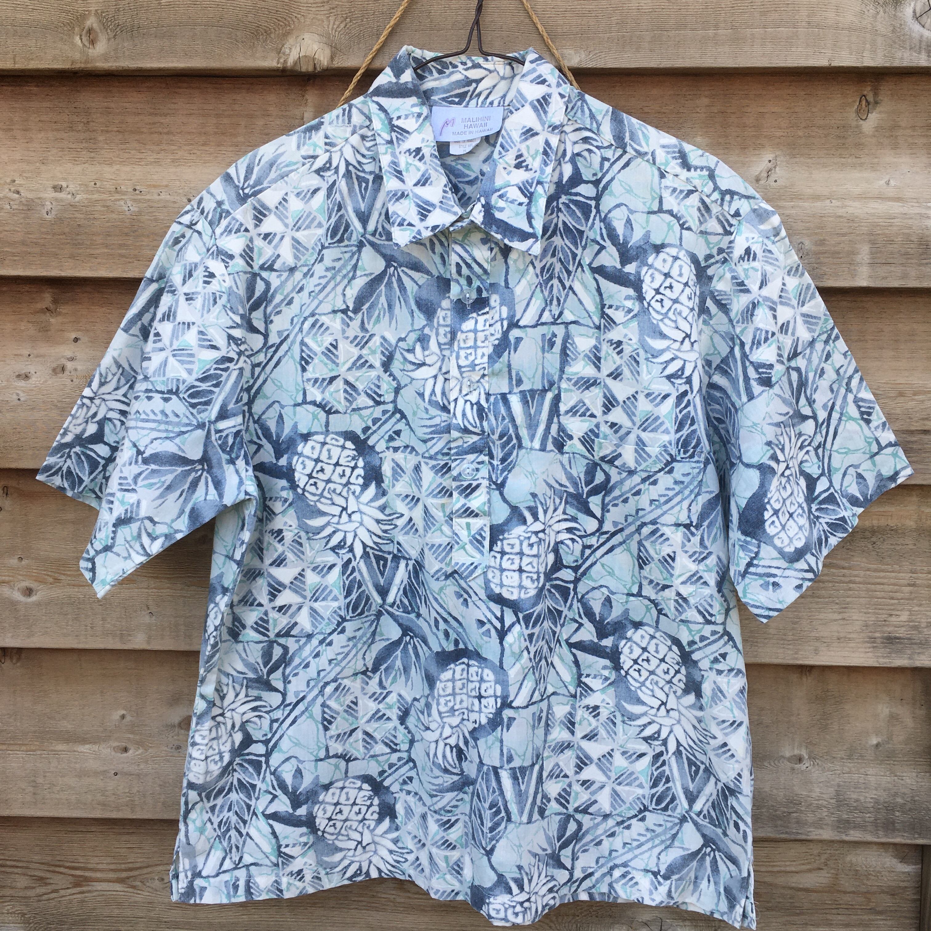 MALIHINI MADE IN HAWAII M 裏使い パイナップル柄 プルオーバー ハワイアンシャツ アロハシャツ