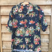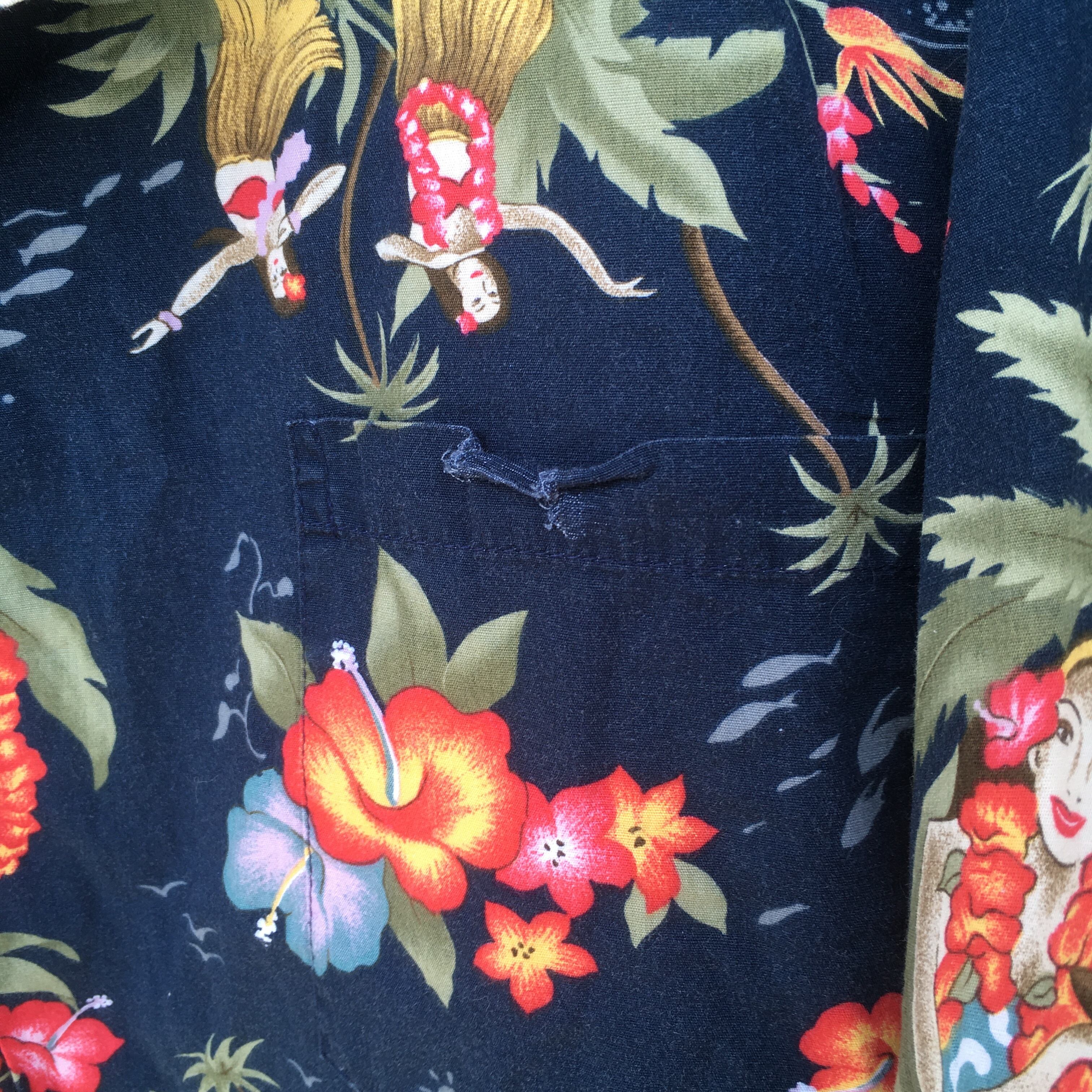 ビッグサイズ KIM MADE IN HAWAII 3XL ハワイアンシャツ アロハシャツ フラガール柄 花柄 ネイビー