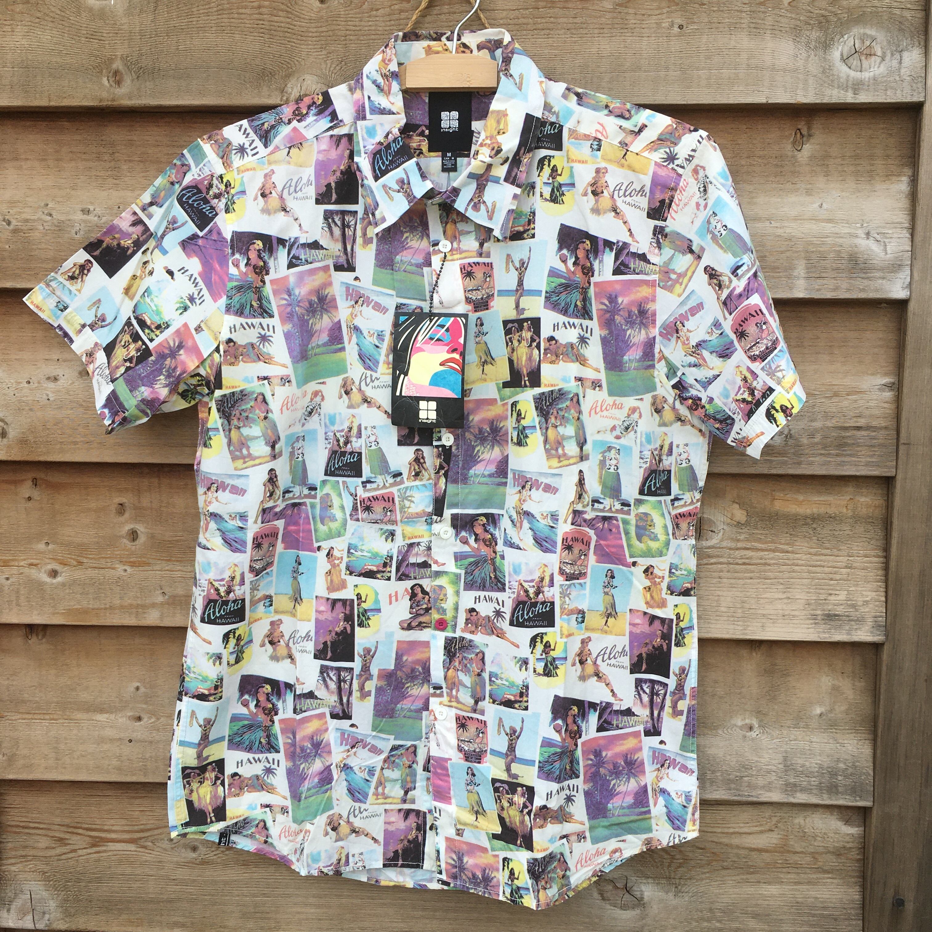 タグ付き新品 未使用 insight M ハワイアンシャツ アロハシャツ フラガール柄 ピンナップ柄 ホワイト