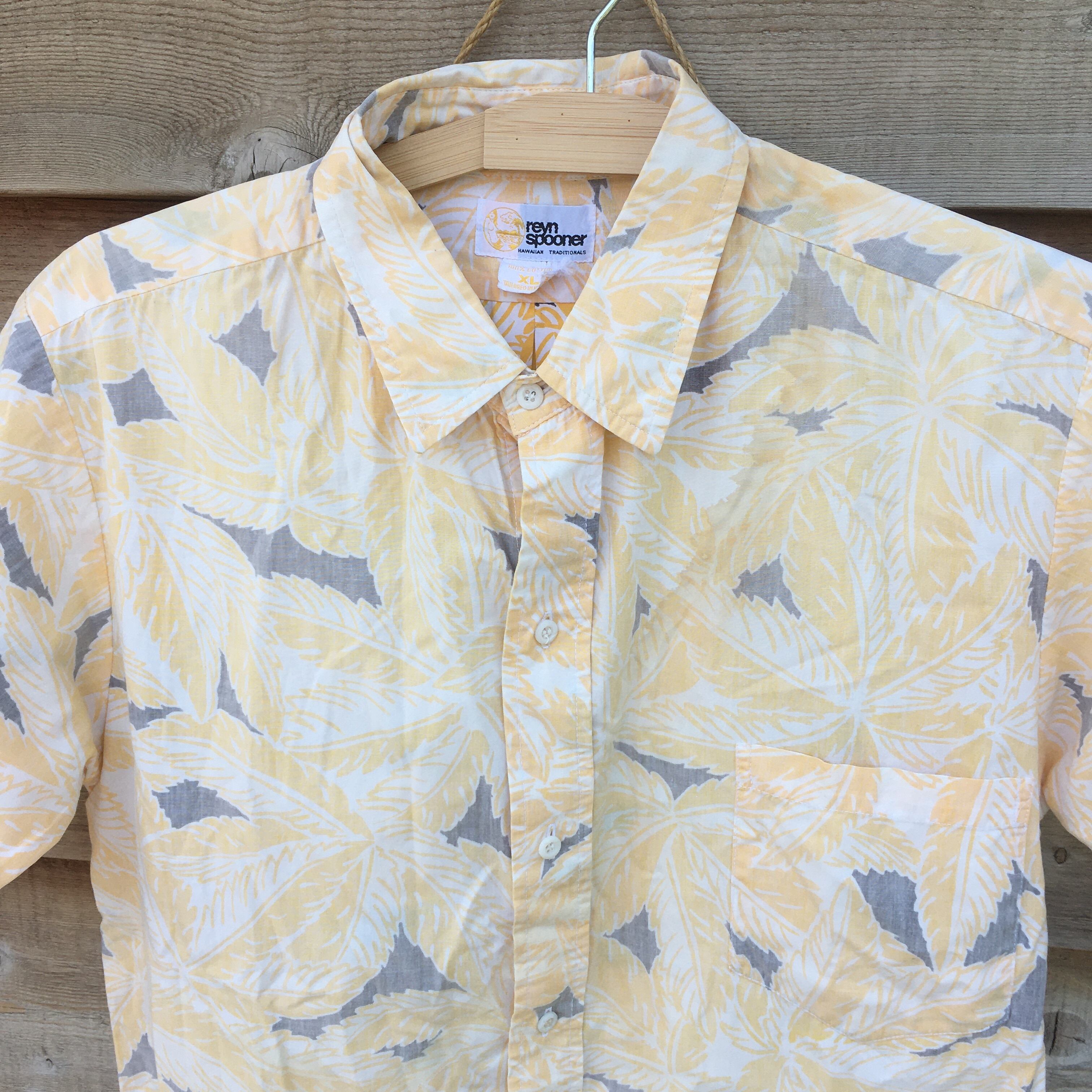 レインスプーナー reyn spooner ユースXL 裏使い リーフ柄 ハワイアンシャツ アロハシャツ イエロー