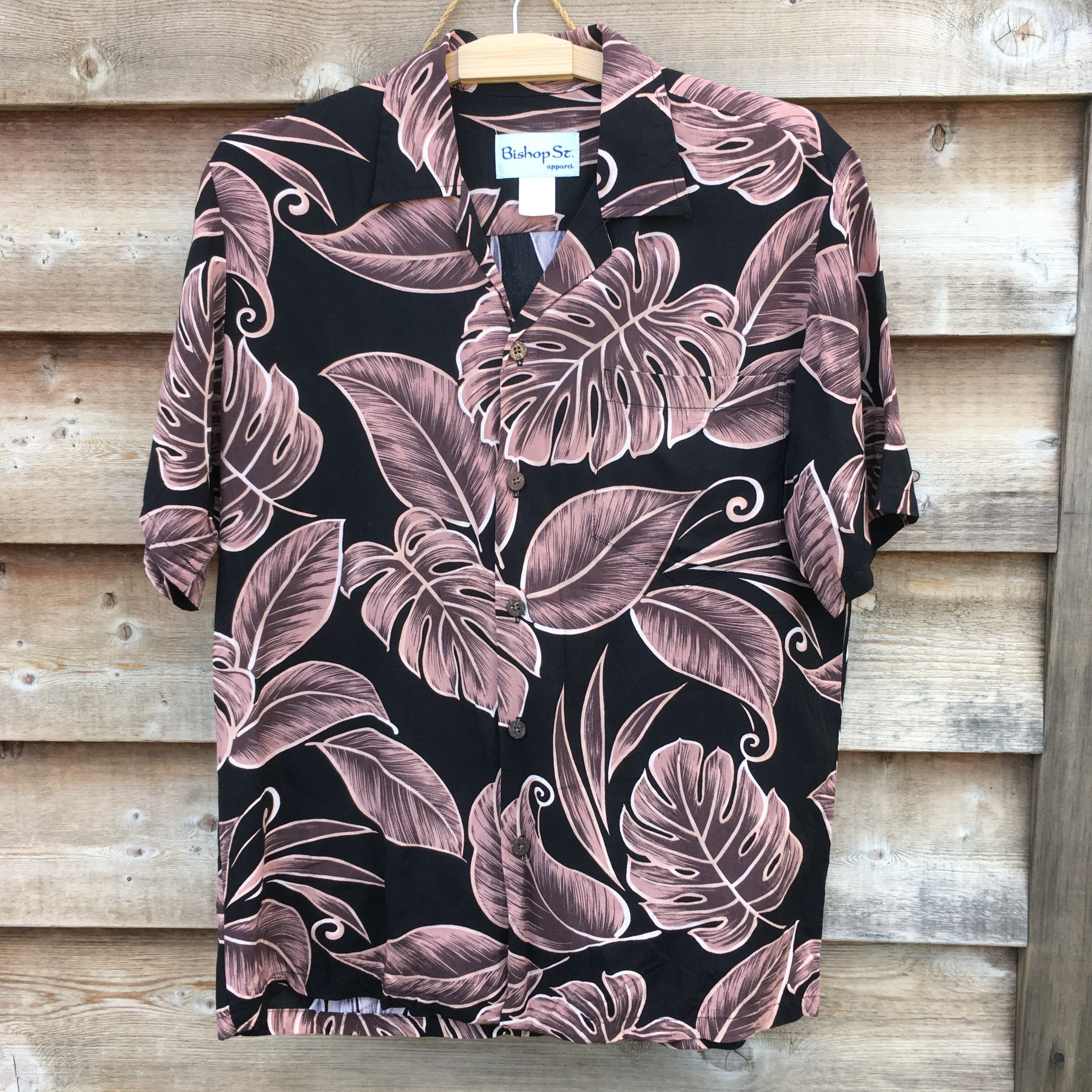 Bishop St. MADE IN HAWAII S アロハシャツ ハワイアンシャツ リーフ柄 ブラック